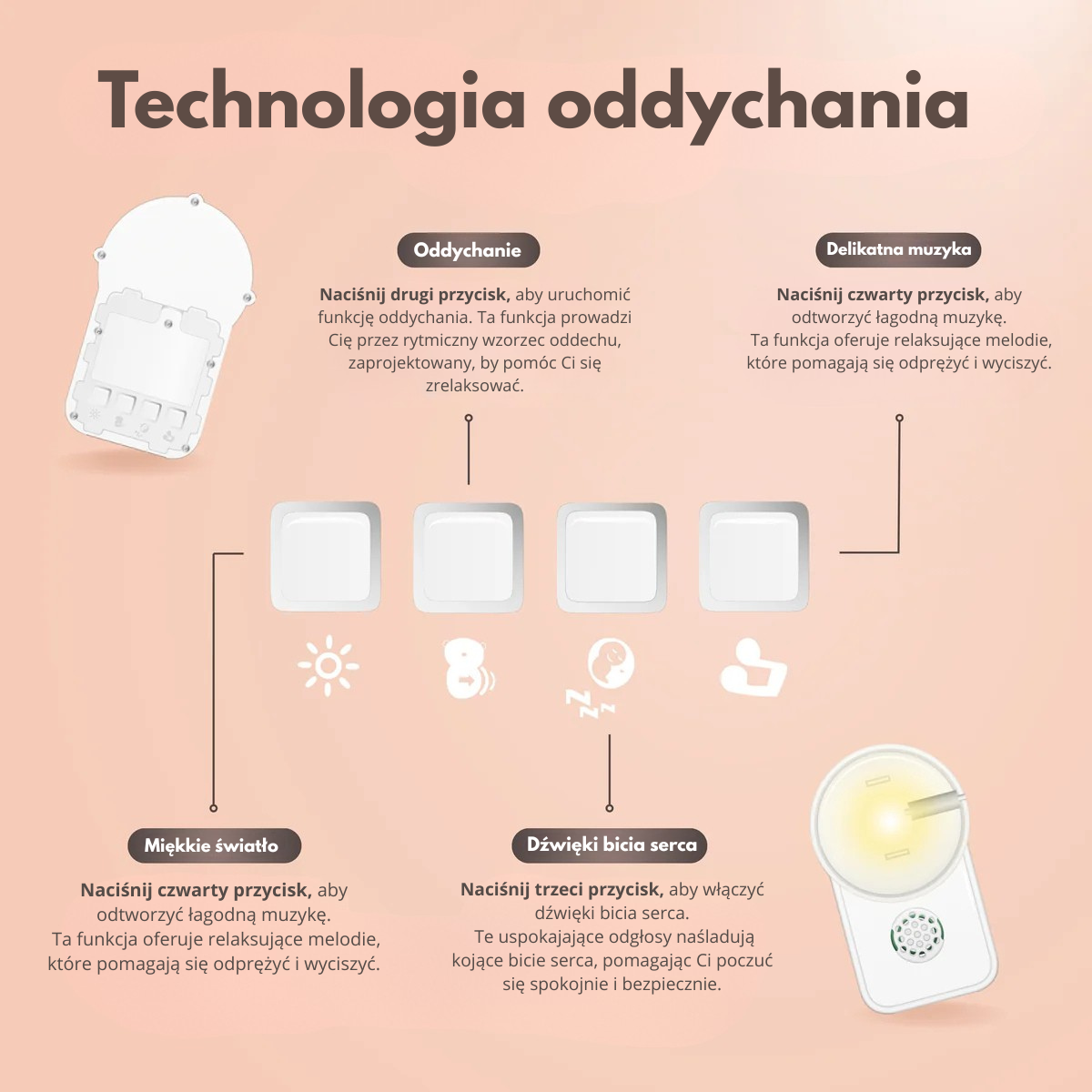 - Imita il ritmo del respiro – il bambino si addormenta con un morbido “battito” rilassante